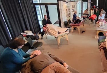 Elle anime également des ateliers et formations en entreprise, en centre de formation et en milieu hospitalier, favorisant la qualité de vie au travail et la prévention du stress